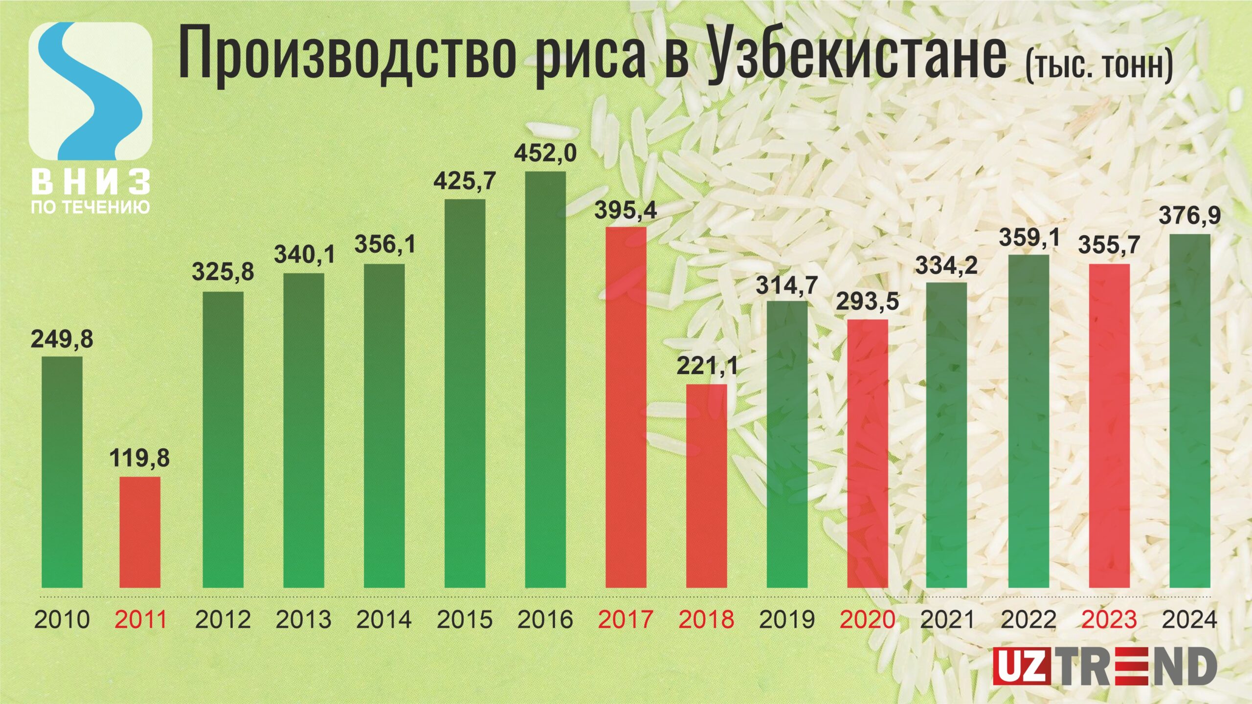 Рис со всей уверенностью можно назвать «вторым хлебом». В нашей стране даже существует «индекс плова», который без риса не приготовить. Это неофициальный способ определения паритета покупательной способности по аналогии с американским «индексом биг-мака» или украинским и российским «индексом борща». Кстати, в 2016 году узбекский и таджикский плов были признаны ЮНЕСКО объектами нематериального культурного наследия. Но кроме него рис присутствует в разных блюдах узбекской кухни – маставе, мошкичиры, шавле и многих других. С ростом населения растет и потребность в рисе.